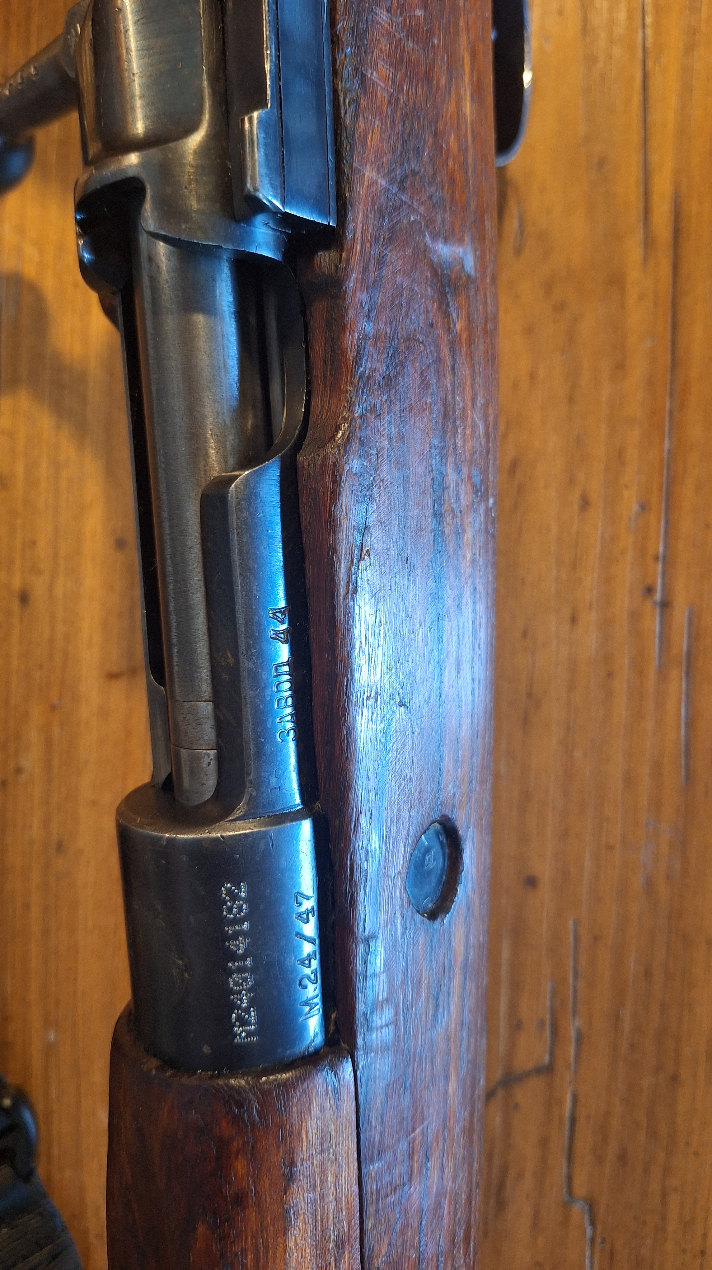 Post WW2 Mauser from Yugoslavia. These Mausers were usually made from leftover rifle stocks and parts left behind or captured after the war. Most have had their original markings scrubbed and finish re-done by the Yugoslav arsenal and have had their receivers reserialized. This rifle features the Yugoslavian Crest on the top of the receiver and has the “Factory 44” stamped into the left side, showing where the rifle was rebuilt into an M24/47 Mauser.